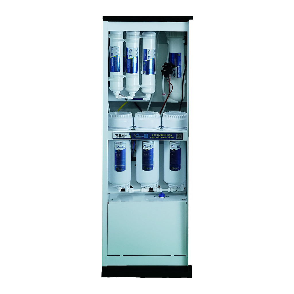 Lọc Nước Tinh Khiết: Máy sử dụng công nghệ RO để loại bỏ các tạp chất, vi khuẩn, virus, kim loại nặng và các chất gây ô nhiễm khác trong nước, đảm bảo nguồn nước sạch và an toàn cho người sử dụng.
